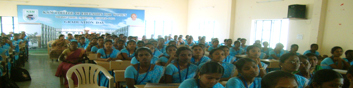 The Trust achieved the task of establishing this college with a B.Ed., course under the leadership of the Chairman for the K.S.Memorial Education Trust, Mr. S. Palanikumarasamy, B.A., B.L., who is the founder and managing Trustee of the Trust and also the first Chairman of the K.S.M. College of Education for Women. Mr. P. Kumarasamy, M.E., is currently the Chairman who shoulders on the responsibilities of the Administration and Mrs. K. Gopiga, B.E.,M.C.A., is currently the Correspondent/Secretary of the College.